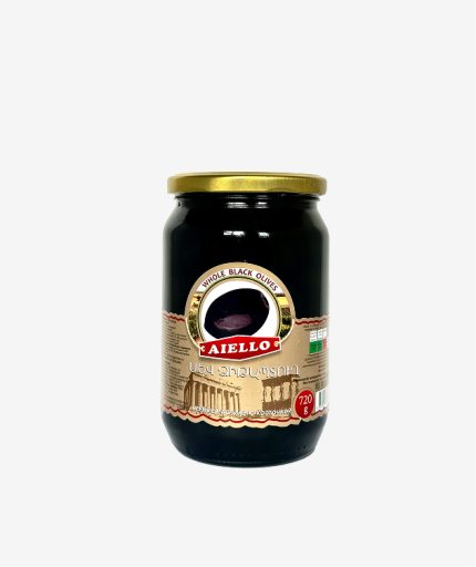 Black olives preserved in brine for everyday use.